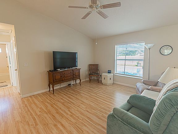 Stylish 3/2/2 pool home in a prime location available now! Featuring a new 2024 roof, this well-maintained beauty offers an open floorplan with tile and laminate floors throughout. The modern kitchen includes stainless steel appliances and flows seamlessly into spacious living areas. Well fed sprinkler system, 2020 a/c with uv light, 2024 water heater. Step outside to your own private retreat--an inviting square inground pool, covered lanai, and open paver patio, all within a fenced backyard perfect for relaxing or entertaining. Move-in ready and beautifully cared for--this home checks all the boxes!