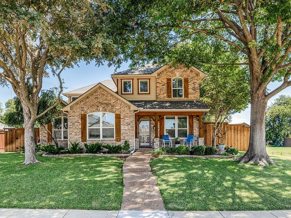 FANTASTIC! This beautifully maintained home blends classic charm with modern updates, offering 4 spacious bedrooms and an office (currently used as a 5th bedroom), plus versatile living spaces perfect for entertaining or relaxing. Step inside to find soaring ceilings, rich wood floors, triple-pane windows, plantation shutters, and abundant natural light throughout. The gourmet kitchen boasts quartz countertops, stainless steel appliances, wood-planked ceilings, and a large island that opens to a cozy family room with a fireplace. A standout feature is the heated and cooled sunroom with its own fireplace that's an ideal space for family game nights, entertaining guests, or simply unwinding in comfort year-round. Upstairs offers a game room, media room (currently used as a bedroom), and two additional bedrooms perfect for guests or growing families. The oversized garage is equipped with AC and extensive built-in storage for added functionality and convenience. Additional highlights include a whole-house generator, custom shutters, and a detached backyard workshop that's ideal for hobbies, projects, or extra storage. Enjoy outdoor living in the beautifully landscaped yard with an oversized patio. Behind the home is a scenic walking trail and pond, offering a serene and picturesque backdrop. With no adjacent neighbors, this unique lot provides rare privacy in a peaceful setting. Located in the highly desirable Spring Meadow community and within walking distance to the community park, top-rated Allen ISD schools, H-E-B, shopping, dining, and more this home truly has it all. Plus, with tons of thoughtful updates and features throughout, it's move-in ready and designed for modern living!