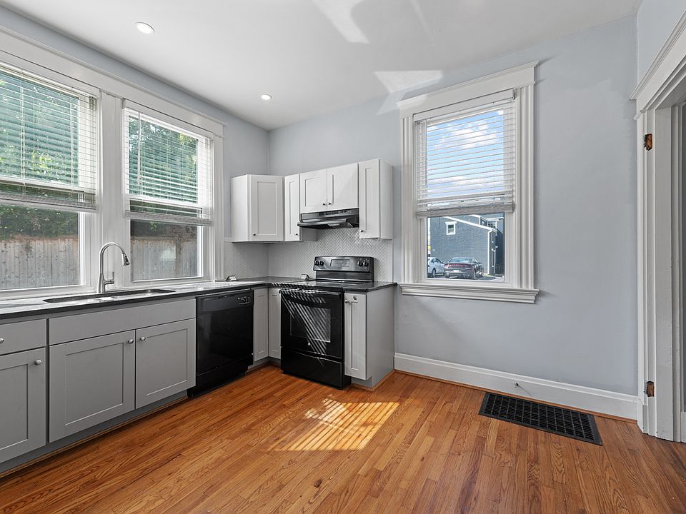 Charming, renovated 2BR/1BA in a quiet three-unit building. Bright main level with hardwood floors, tall ceilings, and natural light. Living/dining area features a custom wood accent wall; modern kitchen has shaker cabinets, granite counters, tile backsplash, and black appliances. Upstairs are two spacious bedrooms and a full bath with subway tile and classic hex floor. In-unit washer and dryer included. Central heating and cooling. Prime Covington location minutes to MainStrasse, Covington Yard, the riverfront, and quick access to downtown Cincinnati.