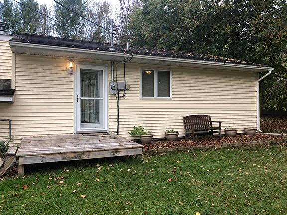 Storage shed 160 sq. ft. behind garage. Garage has one large stall and one single stall with lots of storage space. House has a unique layout. When you walk in the front door there is an entryway with closet, the kitchen, living room, dining area, bathroom, pantry and linen closet. From the main level there is one half a flight of stairs that go down to the laundry room with a large amount of under-house storage that also has the boiler and water heater, the master bedroom with lots of closet space, master bathroom with soaking tub, and 2 other bedrooms. From the main level there is another half flight of stairs that go to a large open room that could be a bedroom, recreation room, or additional living room. The back yard is a great size with playhouse and is treed in for natural privacy. Friendly neighbors and a very safe area. I currently redid the kitchen cabinets so they are white now. The flooring is out of the kitchen and living room to be redone and the shower is out of the upstairs bathroom to also be replaced.