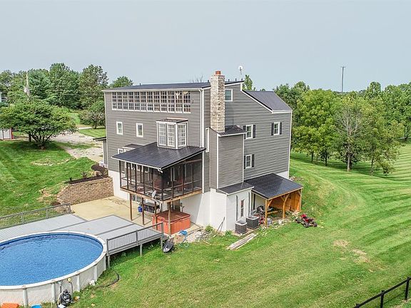 If you have been waiting for a perfect location, located right in the middle of Scott, Harrison, and Bourbon Counties with 10 acres, this may be the one. A total of (5) bedrooms and (3) full baths and (1) half bath that has been totally refinished with lots of custom tile. There is a large eat in kitchen, with a bar, dining area and a great room with a fireplace. Comes complete with a large unfinished basement that could be finished and add an additional 1700 more square feet. The outside boasts a large in-ground pool with a deck surrounding the perimeter. Bring all you animals, horses, goats, sheeps, dogs, etc, and they will love romping over the 10 acres. Don't delay, make you appointment today.