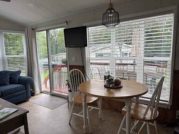 Vacation vibes await in this great getaway in Rock River Leisure Estates! This Dutch Park Park Model offers a fresh new interior w/updated kitchen, flooring, lighting & thermopane windows. Natural gas HVAC in 2018 & new Thermoline hydrant in 2023. The roomy addition makes a great bunk room or family room. Most furniture is included making this property ready to move in and enjoy! Situated on a large level lot bordered by trees & park greenspace for extra privacy! Big front deck, backyard firepit, paved driveway & shed for golf cart/storage . Enjoy RRLE?s 2 pools, fishing pond, tennis courts, playground, Volleyball & year-round activities. Minutes to Rock River & Lake Koshkonong for endless boating & fishing fun! Less than 2 hours from Chicago.