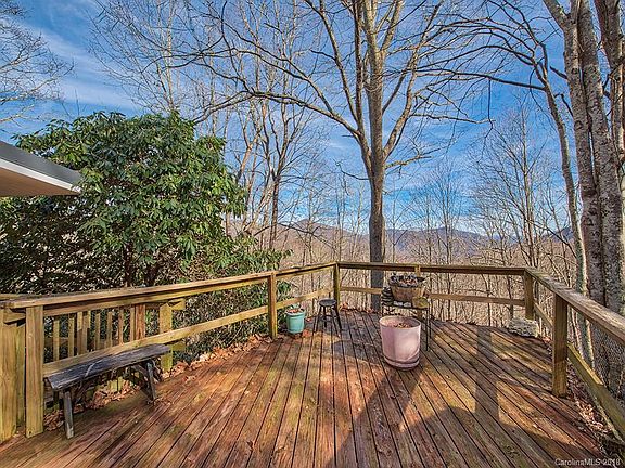 A Bargain in the woods... private setting, FURNISHED, carport, large covered deck, garden areas (beautiful flowers in spring & summer). This SITE BUILT home with 2 bedrooms, 2 baths could be your mountain get-a-way. Large kitchen, open to the living room and fireplace, plenty of room for dining table and island breakfast bar. There are 3 separate outbuildings (10x16, 10x20, 8x8) for your projects, hobbies, workshops, some with electric. 2.5+ Acres Includes PIN 7666-35-4832. Stone patio or covered deck both provide great outdoor entertaining/dining areas. Large area of level yard with plenty of room to park toys, ATV's welcome in this neighborhood. Elk also welcome! Between Maggie Valley and Cherokee off of Hwy 19/Soco Rd. Very near the Blue Ridge Pkwy entrance on Hwy 19.