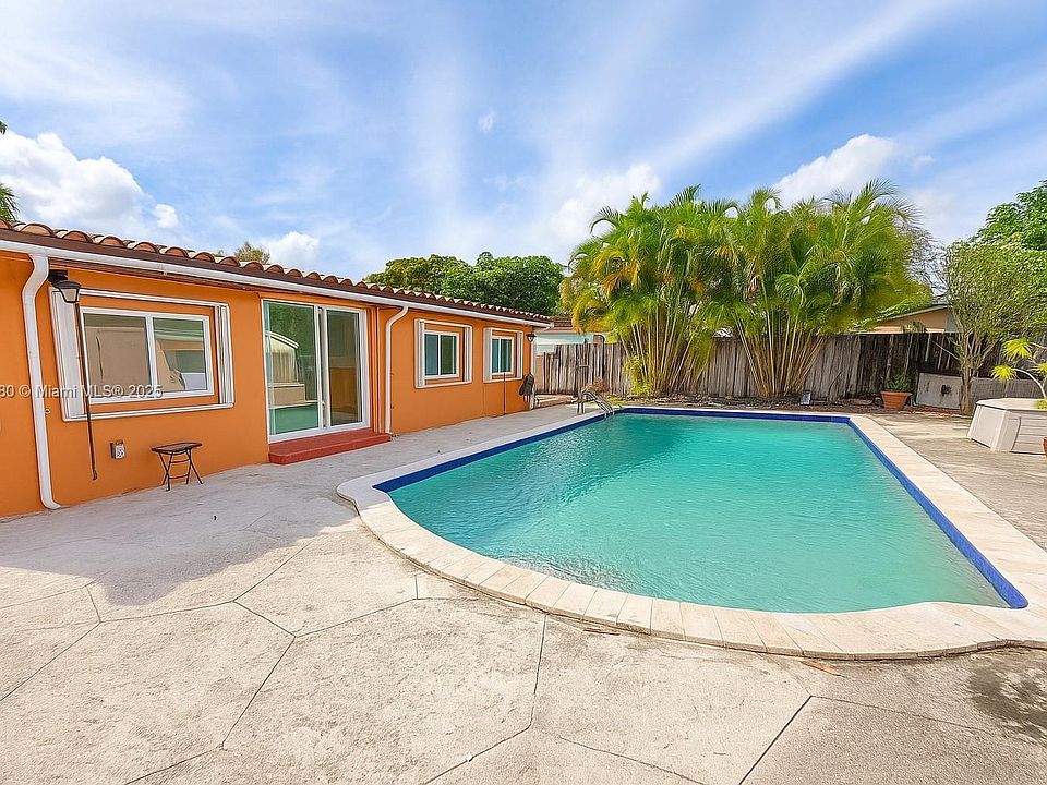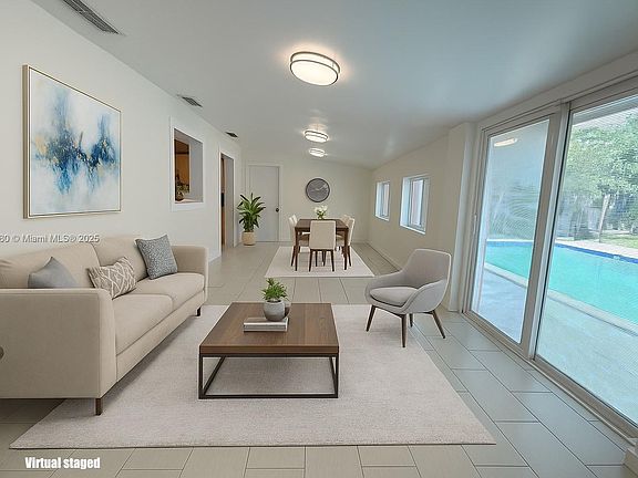Discover the charm of Miami Springs, one of our most treasured neighborhoods a peaceful, tree-lined community known for its small-town warmth and exceptional convenience. This highly desirable community blends historic character with a relaxed suburban feel, offering the perfect backdrop for this beautiful pool home located blocks from the Golf and Country Club. Features include an updated modern kitchen and bathroom, a second living room near the pool, a gated drive for additional parking or entertaining, hurricane shutters, two refrigerators, and a circular drive in front adds to the ample parking. Nearby are many restaurants, aquatic and community centers, a park and bicycle trails. Just minutes from Miami International Airport, top schools and major highways. Virtual staged.