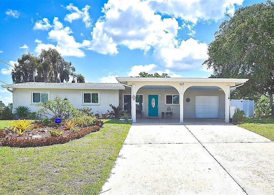 One or more photo(s) has been virtually staged. Huge Price Reduction!! Motivated Sellers!! Welcome to Venice Gardens! This UPDATED WATERFRONT 4-bedroom, 2-bathroom, single car garage RE-PIPED home is located directly across the street from the Venice Garden's Civic Association, which has an Olympic Size Heated Outdoor Pool (optional $165/annual fee per household). PUBLICE WATER & SEWER in Venice Gardens and only minutes to the historical downtown of Venice Island and Venice Beach! BRAND NEW ROOF (warranty transfers to buyers), NEW PGT HURRICANE WINDOWS & SLIDERS, NEW HOT WATER HEATER, NEW RAIN GUTTERS, NEW Backyard Decking, New Landscaping, NEW DUCTS & HVAC (serviced annually), New Primary Bath Vanity, Lighting, washer & more! Unique layout with a FULL UPDATED KITCHEN including GRANITE COUNTERTOPS, TILE BACKSPLASH, WOODEN CABINETRY, LIGHTING & STAINLESS STEEL APPLIANCES! No carpet in this home! Tile flooring and beautiful ORIGINAL Terrazzo Flooring in the kitchen and Great Room! The Primary En Suite provides the most privacy and boasts Waterviews with multiple sliders out to your backyard. The backyard is an Entertainer's Dream as it features a large lighted deck overlooking the lake, has a pavered side off of the tiki bar and is surrounded by flower beds. Enjoy your morning coffee and then a cocktail made at your very own Tiki Bar on the lake at sunset! You will feel like your in Key West or a tropical island, but no, you are HOME! Are you looking for your own private pool? Well look no further, ADD A CUSTOM POOL to this property overlooking the lake! NEW fencing off of the side of the garage is perfect for all your beach necessities, gardening tools or even kayak/paddleboard storage! Add an RV Parking Pad here if you wish! Double Concrete Carport - like an open 2-car garage really...guest quarters are on the front of the home off the family room...NO HOA or CDD Fees here in Venice Gardens. This highly sought after community offers its homeowners their very own private fishing or kayak oasis on the lake (literally in the backyard). Endless opportunities here at 413 Tihami, one of the MOST centralized homes you'll find on the market! Call Today to Schedule your private showing!