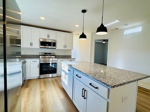 Large islandTwo storage shedsLarge backyardBright open floor planNew landscapingModern finishesNew stainless steel appliances