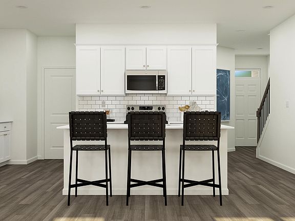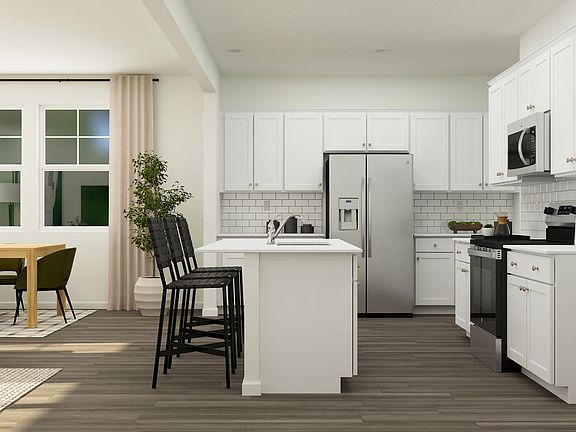 The Designer Collection offers new townhomes with an included lawn care package at Marelli, an upcoming master-planned community in Sanford, NC. Homeowners can enjoy an array of exclusive recreational amenities, including a sparkling saltwater pool with a cabana, a grilling area for gatherings, expansive open spaces, a dedicated dog park and fun-filled playgrounds. Within walking distance is charming Main Street, where dining, shopping and grocery stores can be found. Marelli is near major highways for convenient commutes to Research Triangle Park, Raleigh, Fayetteville and other surrounding cities. The first floor of this new two-story townhome is designed for ease of use. It features a modern kitchen with a center island overlooking the spacious Great Room, intimate dining room and a rear patio, perfect for seamless indoor-outdoor living. Upstairs, a versatile central loft separates the two secondary bedrooms from a lavish owner's suite, which comes complete with an adjoining bathroom and walk-in closet. Photos are for illustrative purposes only and may show optional features.