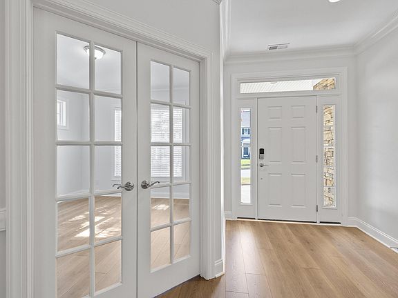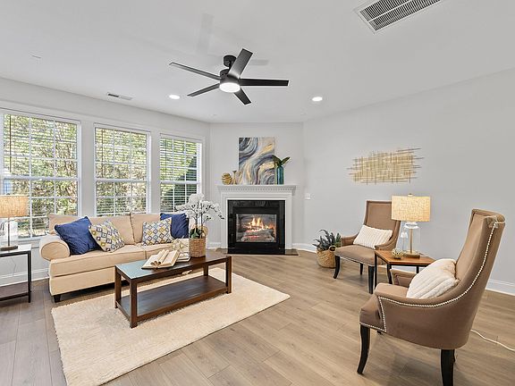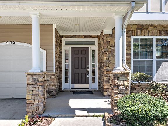 Move-in ready with Extensive Fresh Upgrades: New Luxury Vinyl Plank & Carpet Flooring, Fresh Interior Paint, Quartz Countertops with Matching Backsplash & Sink, Brand-New Gas Stove, Washer & Dryer, and Upgraded Light Fixtures. This beautifully maintained home features 4 oversized bedrooms + office/den + spacious loft landing and 2.5 baths, nestled in one of the most desirable West Cary communities with top-rated schools. Situated on a premium lot with a private wooded backyard, it offers the perfect blend of tranquility and privacy. Inside, Stunning 9-Foot Ceilings on Both Levels, crown molding throughout the main floor, and a private den/office with French doors. The chef's kitchen boasts a large island, stainless steel appliances, and stunning new finishes. Upstairs, the inviting loft landing leads to a grand primary suite with vaulted ceiling, plus three generously sized bedrooms—each refreshed with brand-new carpet. Community amenities include a pool, playground, and more. Conveniently located near RTP, RDU Airport, Costco, Target, Whole Foods, shopping plazas, and all the essentials. Google Fiber available!