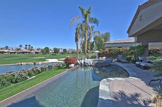Great buy for today's market. Property has been updated and remodeled with all new flooring, stainless convection oven, microwave, warming drawer, carpeting, marble counters in all bathrooms, bathroom fixtures, new air conditioning units and much more. Popular Palo Verde 5 with four bedrooms four & half baths, plus separate guest house, total living space at 3,310 square feet. Salt water system infinity pool & spa over looking a large lake and fairway with mountain views. Add a custom BBQ, elect