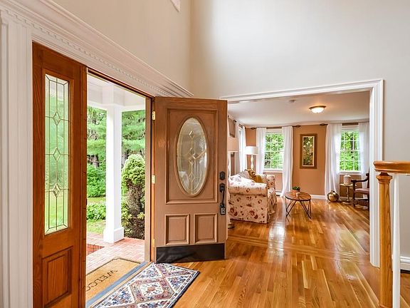 Picture Perfect, this majestic colonial is located in an incredibly commuter friendly location set back from the street offering over 4 acres of privacy. Meticulously maintained by original builder, custom built & designed with beautiful details, lots of spaces and places for all to enjoy. Master suite offers TWO walk in closets and exquisite, expansive master bath which highlights tiled shower, double sinks & jacuzzi tub. Spacious den w/ gorgeous stone fireplace. Split staircase. Chef's kitchen featuring over-sized center island with gas cook top & storage underneath, beautiful granite counters, stainless appliances & dining area to fit a large crowd. Family room off of kitchen with built-ins galore. Gleaming hardwoods in almost every room. Three season room spills onto rear deck overlooking backyard with patio. Perfect for the buyer seeking a unique, quality custom home in a beautifully landscaped private setting.