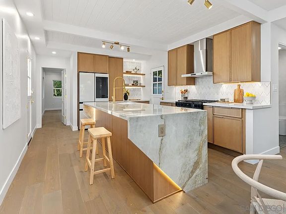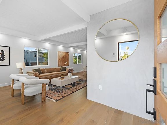 OPEN HOUSES CANCELLED, APOLOGIES FOR INCONVENIENCE! Completely reimagined mid-century modern home close to Hillcrest and University Heights, where timeless design meets today’s luxury. This single-level stunner has been extensively remodeled with the finest finishes and attention to detail. Inside, you’ll find white-oak cabinetry, a dramatic custom quartzite island with integrated LED lighting and impressive design, Samsung Bespoke white appliances, including a smart refrigerator with interactive LED display, a dry bar and custom LED lit inset wine rack. The kitchen also boasts two Dutch-doors perfect for enjoying the San Diego breeze. The open floor plan is highlighted by wide-plank oak flooring, black-framed windows, new 3 panel doors, and a smooth-plaster fireplace that anchors the living space. Every room showcases curated designer lighting, while custom-tiled showers and smooth-coat stucco exterior complete the elevated aesthetic. Outside, enjoy thoughtful drought-tolerant landscaping, LED accent lighting for nighttime ambiance, a built-in bench, and utility hookups (gas, electric, and plumbing)—ready for a future outdoor kitchen or BBQ area. The converted garage adds valuable flex space, perfect for a home office, gym, studio, or guest suite. Located just steps from the Vermont Street Footbridge, enjoy direct access to Trader Joe’s, cafes, restaurants, and shopping—the best of Hillcrest and University Heights at your doorstep. A rare, move-in-ready mid-century showpiece blending architectural integrity with cutting-edge comfort. ***