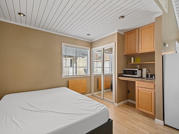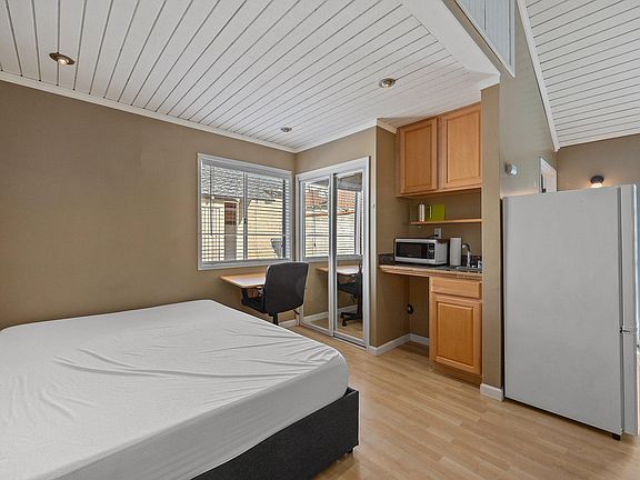 Cozy Furnished Studio home located behind main home. Alley access and access through the front side gate of home. 1 Parking space through alley access. Bedroom, kitchenette and living area all 1 room. Bathroom included within unit. Wall AC. Kitchenette includes refrigerator and microwave. No laundry or access to garage. Storage possible in the parking area and also in loft within home.