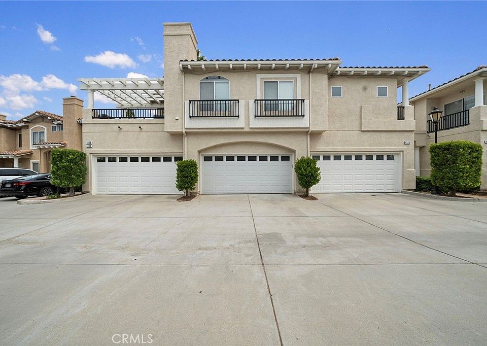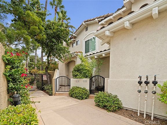 Upon entry through the gated courtyard, you are greeted by the formal living area, a fireplace, an adjacent office and a powder bath that caters to guests. The kitchen is appointed with tile countertops, stainless steel appliances, ample cabinetry and breakfast bar. The dining room slider leads to the rear, and a wrap-around patio.