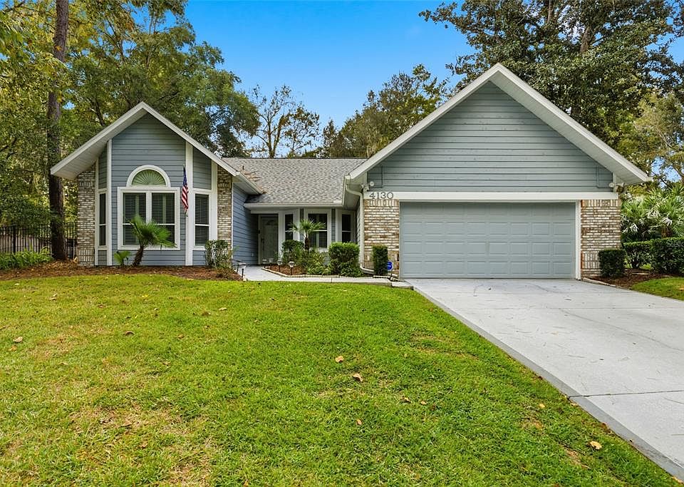 Come enjoy Florida living at its finest in this well maintained 4 bedroom, 2 bathroom home with a POOL and expansive paver patio! Located in Summer Creek off 39th Ave, this home offers a prime location close to shopping and within an easy commute to I-75, the University of Florida, and all that Alachua County has to offer. When you arrive you'll appreciate the charming exterior that has been updated and maintained with a new roof in 2025 and fresh paint within the last 2 years. Step inside to enjoy a welcoming foyer that opens to soaring cathedral ceilings in the living room, a brick wood burning fireplace, and a view straight through to the outdoor oasis. Immediately to the left is the private primary suite with cathedral ceilings, beautiful bay windows, and a renovated primary bathroom with direct access to the pool. A 3-way split offers extended privacy for the whole family, with an oversized 2nd bedroom featuring bay windows, and two additional guest bedrooms in a separate hallway with a full guest bathroom. The spacious kitchen is well-appointed with updated appliances, ample cabinetry, granite countertops, and bar height seating. The best features of this property await you outside! French doors open to an expansive covered and screened patio with a large pool and in ground spa. Beyond the screened patio is a stunning paver patio perfect for enjoying beautiful Florida weather year round. There's so much to love about this property, call today to schedule a showing!