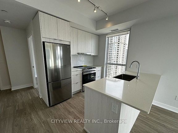 Welcome to AVIA 2 by Amacon Developments located in the heart of Mississauga's City Centre. This Corner unit features a functional split 2 Bedroom layout with ample natural light, Floorplan "Cascade" with 866 sqft interior and a spacious 120 sqft balcony with South East facing views. Laminate flooring throughout with modern, light and airy finishes. Modern kitchen with built in appliances and quartz counter tops, Combined living/dining room with wrap around windows offering nothing but natural light. Spacious primary bedroom with both a mirrored closet and a walk in closet with a functional 3pc ensuite. Second Bedroom features mirrored closet and an East view. Large balcony with stunning views of downtown Mississauga. Steps from Sheridan college, square one shopping mall, highway 403, schools, restaurants, entertainment and much more!