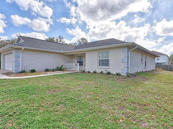 Well maintained 4 bedroom 2 bathroom concrete block home with 1,970 living square feet, 2,604 square feet under roof, an attached 2 car garage, & a fenced 0.24 acre yard in Marion Oaks North subdivision in Ocala, FL. Home features a split bedroom floor plan, vaulted ceilings, a separate living area, a formal dining area, and an inside laundry room. The spacious eat in kitchen has plenty of cabinets and counter top space. All of the bedrooms are a good size and the master has a generously sized walk in closet. Tile and hardwood flooring throughout the home. Surrounded by other well kept homes. Fenced in yard perfect for entertaining family and friends while enjoying the outdoors. Property is high and dry. Washer and dryer included. Schedule your showing today!