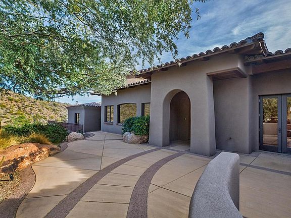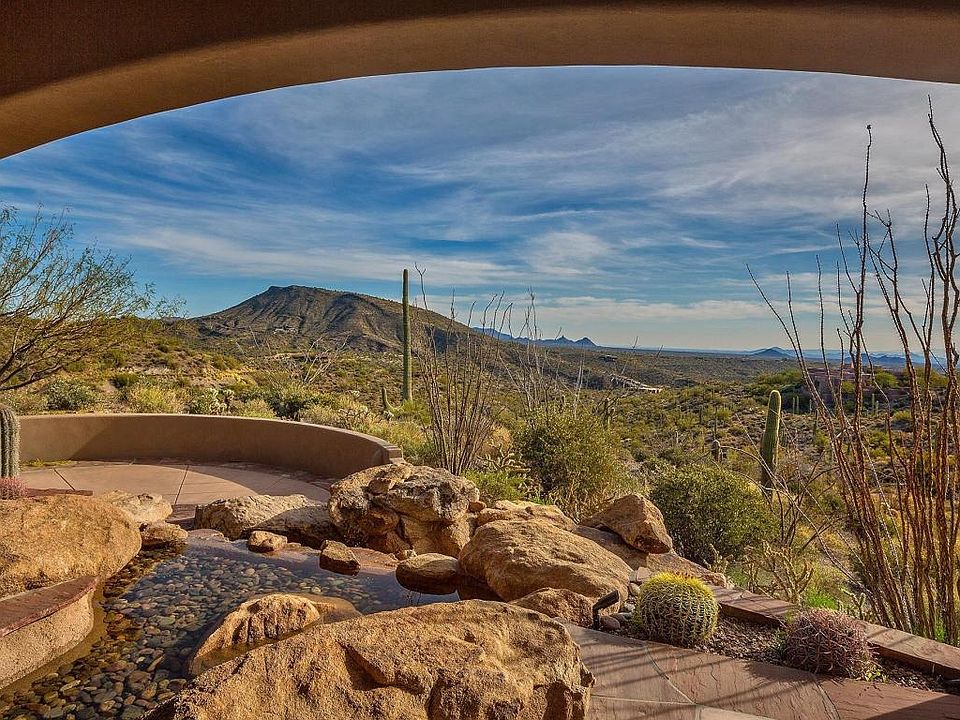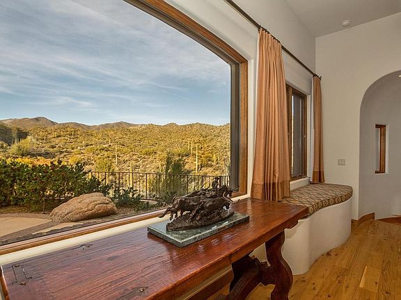 Million dollar views enhance this Spanish influenced custom home designed by Ashbell Rogers. Perfectly sited on 11+ acres to capture panoramic views from every room in the home in exclusive gated Carefree Ranch Homesteads. Split bedrooms, all ensuite, together with great room floor plan, formal dining, chef kitchen, numerous fireplaces, spacious 3CG and expansive outdoor living spaces make this a wonderful desert retreat. Fine finishes include Australian Cypress plank flooring, knotty Alder doors, cantera stone accents, Venetian plaster fireplace, wood clad windows, S/S appliances and specialty arched and beamed kitchen ceiling treatment. Aggressively priced and easy to show. Furnishings available by separate bill of sale.