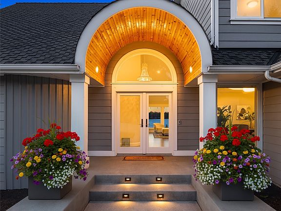 Experience ultimate lakefront living on Lake Goodwin—where gated entry meets resort-style living. Exceptional estate looks straight down the lake and spans 1.43 acres with 200 feet of west-facing shoreline, offering all-day sunshine and breathtaking sunsets. Enjoy main-level primary suite, home office, large flex room, and theatre with separate MIL space. Step outside to an entertainer’s paradise with a covered, heated deck, over 2,600 sq. ft. of patio space, hot tub, w/ expansive lake views. 3-car garage, PLUS 1,280 sq. ft. detached shop with mezzanine, boat shed, new dock—pickleball and basketball courts, orchard, chicken coop, treehouse, and RV parking with hookups. Every detail is designed for relaxation, recreation, and refined living.