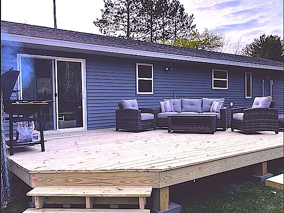 This home has been totally remodeled. Newly remodeled kitchen, upgraded appliances, new flooring, added living space, updated new bathrooms, a beautiful backyard deck, new roofing, and siding, plus more. The detached 24 x 24 garage was built in 2007 and has been insulated and heat has been added. There is a pole building for extra storage. All one-level living. Sets on a beautiful level lot with lots of mature trees. Close to town and many amenities. The playground & pool are negotiable or the seller will make arrangements to remove weather permitting. Septic/Certificate of Compliance. All information within is to be verified by the buyer's agent or buyers.