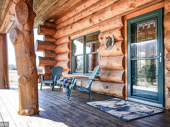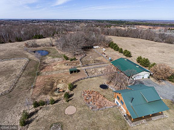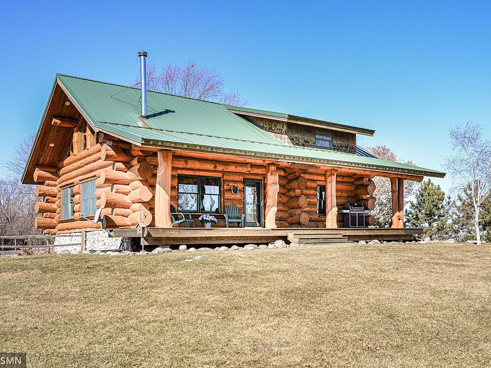 Gorgeous Swedish Cope designed log cabin with 36x72 pole building on 20 gorgeous acres. 3BR/3BA, 1.5 story with walk-out. Close to Wild Mountain. St. Croix River, Wild River State Park. You will love the soaring main level with log beams & huge south facing windows. Relax in the living room with wood stove for cozy evenings, sugar maple floors, open design with dining and beautiful kitchen. Sure to impress! Main level living also includes BR, 3/4 bath & laundry. Upper level has the master bedroom suite with walk-in closet, master bath with jetted tub, & private deck with river valley views to Wisconsin. Also upper level has cozy loft area. Lower level has huge open family room, in-floor heat, stained concrete flooring, walkout, wet bar area with concrete countertop & fieldstone backsplash, 3rd BR & full bath. Great hobby farm setup with fencing, ritchie waterers, loafing & hay shed, chicken coop. Ride right into Wild River Park. Lots of wildlife - great hunting area. Too much to list!