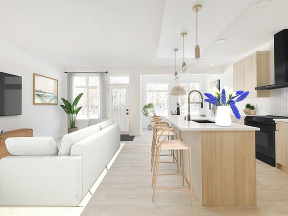Welcome to the “Grayson” in Edgemont by multi–award-winning builder Rohit! This beautifully designed 2-storey showcases the serene Ethereal Zen interior palette and a layout crafted for comfort living. The main floor features a welcoming foyer with garage access, a convenient half bath, and a versatile pocket office. The open-concept kitchen includes a central island, quartz finishes, and a walk-in pantry, while the bright dining and living areas are enhanced by large rear windows that fill the space with natural light. Upstairs, the spacious bonus room offers an ideal secondary living area. The impressive primary suite features a vaulted ceiling, two walk-in closets, and a relaxing ensuite with a soaker tub. Two additional bedrooms, upper-floor laundry, and a full bath complete this level. Property under construction with tentative completion in Spring 2026. Photos are from a different property with same layout and finishes, some were virtually staged for illustration purposes only.