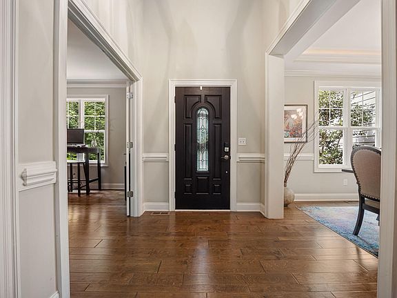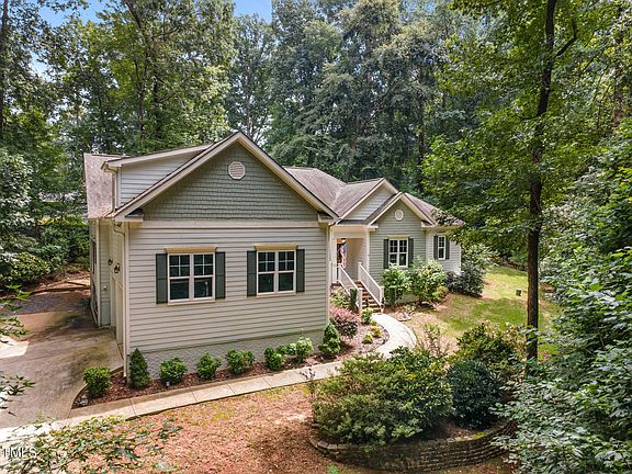 Privacy and seclusion on a 2.79-acre wooded lot, this stunning 2018 custom-built home combines the serenity of a private retreat with the convenience of a prime Apex/Cary location. Just minutes from shopping, schools, Crowder Park, Koka Booth Amphitheater, and the new 540 access—yet with no city taxes or HOA—you'll enjoy the best of both worlds. Step inside to an expansive open floor plan designed for modern living. The first-floor primary suite boasts two walk-in closets and a spa-like bath with soaking tub, oversized walk-in shower, and dual vanities. The gourmet kitchen features stainless steel appliances, soft-close cabinetry, a gas cooktop with retractable vent, and a massive walk-in pantry—all flowing seamlessly into the vaulted great room with cathedral ceilings, built-ins, gas fireplace, and abundant natural light enhanced by Solartubes. Need flexibility? A main-level office or 4th bedroom, formal dining room, and oversized laundry/mudroom provide versatile spaces to suit your lifestyle. Upstairs, two large bedrooms share a full bath, while two walk-in attic areas add incredible storage. Outdoor living is a dream with the expansive covered TREX porch with ceiling fans and grilling area, overlooking lush Palmetto St. Augustine summer grass and private wooded views—perfect for cookouts, bonfires, or simply relaxing in peace. An oversized 2-car garage offers even more space for cars, tools, or a home gym. Built just 5 years ago, this home feels like new and delivers a lifestyle that's hard to find in the Triangle—privacy, convenience, and luxury all in one.