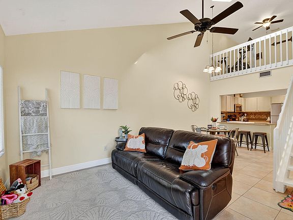 Welcome to 4132 Palm Bay Circle A -- a beautifully updated corner villa that combines modern comfort with effortless South Florida living. This light-filled residence impresses with soaring vaulted ceilings, an open-concept layout, and elegant designer touches throughout.Step inside to a spacious living area that flows seamlessly to the dining and kitchen spaces, perfect for entertaining or relaxing at home. The kitchen features stainless steel appliances (2022), wood cabinetry, and a breakfast bar ideal for casual dining. The home's roof (2022), AC (2020), and fresh exterior paint ensure peace of mind for years to come. A private fenced patio surrounded by tropical palms offers the perfect outdoor retreat ideal for morning coffee, grilling, or evening gatherings under the stars.