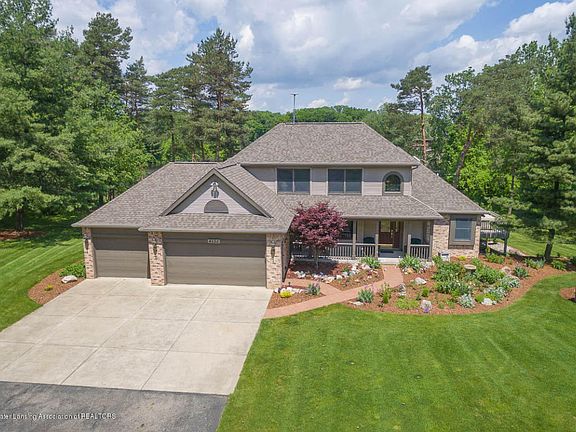 Welcome to 4132 Pine Tree Lane, 2.6 Acres on the Grand River! Wander down this private drive and enjoy nature at its finest as you take the long driveway up to the home meticulously maintained by its original owner, built by Tom Mulder. Step inside to the pretty foyer with large den just to the left boasting hardwood floors. The Den could also be used as a home office or formal dining room! Two story great room with Casablanca fans, fireplace and large windows to take in the breathtaking views of the river and property! Large kitchen with spacious island, eating area, pantry and built-in desk area. Enjoy the 4 season room with surrounding windows, or step outside and take in the views from the large deck off of the eating area complete with Sunsetter awning! Master Suite has additional deck and Master Bath, all on the first level, including large laundry room and additional full bath. Up the stairs you will find three more spacious bedrooms and full bath.