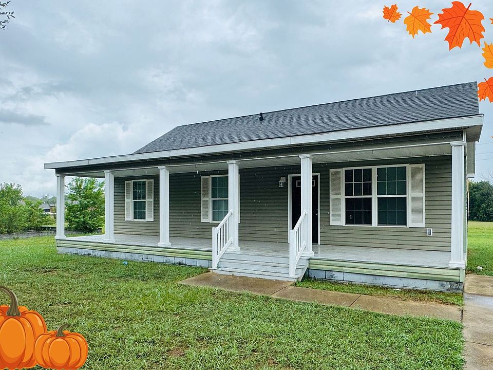 Enjoy a bright, open living room with laminate hardwood floors, a modern kitchen with an island boasting ample storage, and an oversized covered front porch. Primary with ensuite. All bedrooms are comfortably sized.