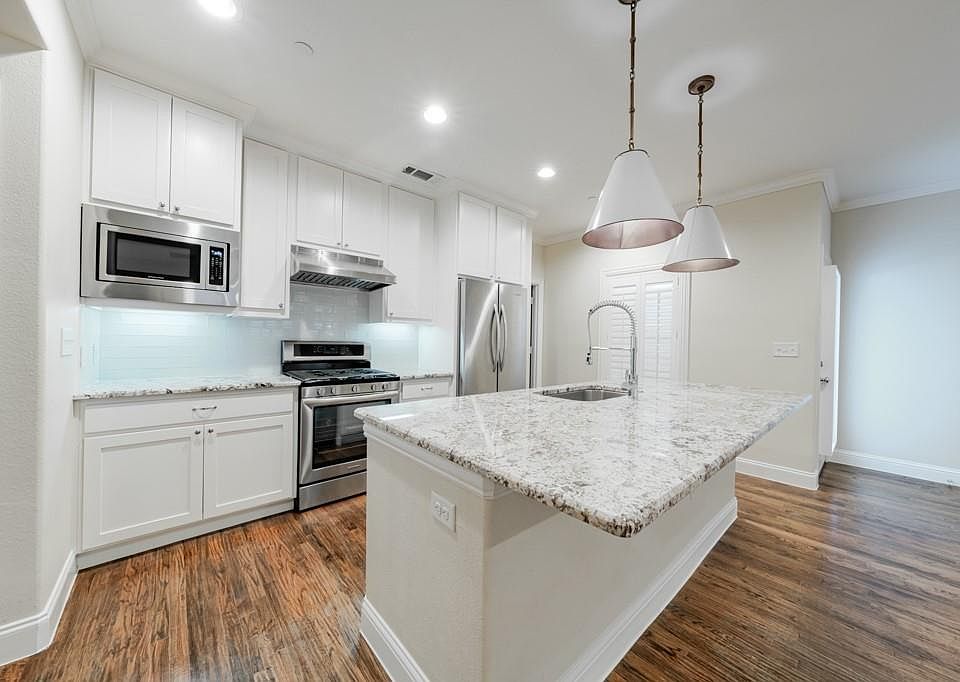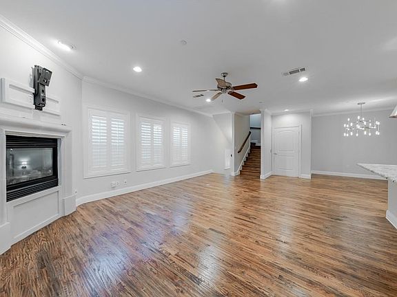 An incredible opportunity to lease in HPISD! This corner-unit home offers 4 bedrooms, 3.1 baths, a private elevator, and a 3-car attached garage. The main level features an open floor plan with gorgeous hardwood floors throughout, a large kitchen overlooking the den and dining area, new designer lighting, a cast stone fireplace, abundant natural light, and a balcony overlooking the private backyard. The oversized primary suite boasts a luxurious marble bathroom with separate shower and soaking tub, plus a huge walk-in closet. Upstairs, you'll find three additional spacious bedrooms all with walk-in closets and plantation shutters. Enjoy the large fenced backyard with a doggy door for easy access. Washer and dryer are included. ONE MONTH FREE!