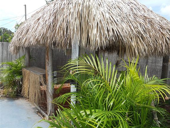 Welcome home to a beautiful 3 Bedroom 2 Bath home. It does not have a garage but a nice storage shed/workshop in the rear yard. This home comes with an incredible tiki hut ready for a great bbq and social gatherings. Its tropical landscaping feels like your on vacation already! Entire house is tile and the air conditioning unit is only a few years old. Home is located in small residential dead end street with no thorough traffic is super quiet. All measurements of rooms have been estimated and should be verified by buyers due diligence period. Sold AS-IS for convenience of seller.