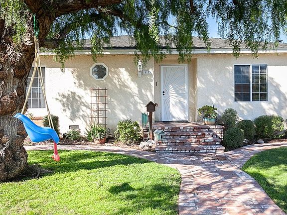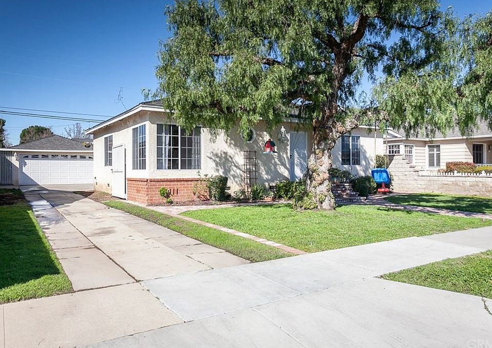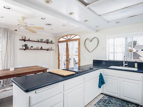 The spacious kitchen in this charming three bedroom home features Corian countertops and bar seating in an open concept design that flows seamlessly into the full sized dining area and living room. French doors from the dining area and a slider from the master suite lead to a steel framed, Trex composite deck with a fully retractable awning that's prefect for grilling and entertaining. The spacious backyard also has a jacuzzi, a new sprinkler system, and additional covered storage behind the detached two-car garage. Additional features include a private bathroom in the master, previously upgraded electrical panel & wiring, upgraded copper piping, Central heat/AC, crown molding, a newer water heater, dual pane windows, original oak wood floors, a brand new front door security gate, and brand new gates for the long driveway and the lawn divider in the backyard.