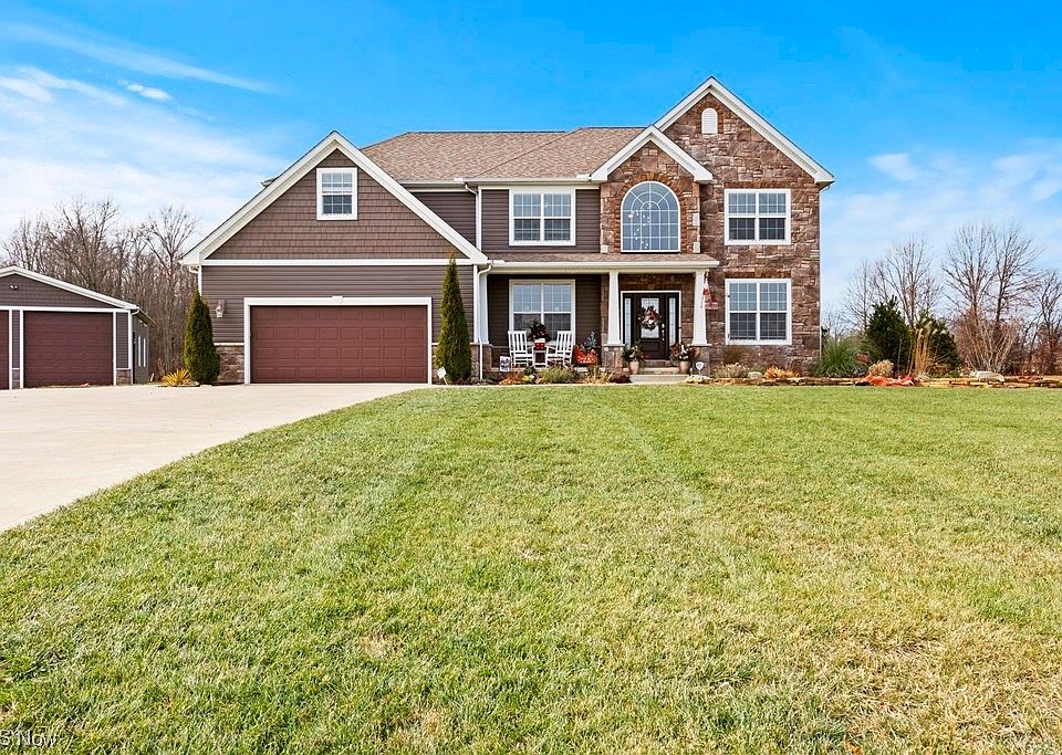 Located in the Ravines Edge subdivision this custom built colonial style home is over 3000 sqft. The kitchen is a chef's dream with granite tops, an island, ceramic backsplash, all stainless appliances including a trash compactor and a 6'x9' walk in pantry. The first floor has a huge great room with a fireplace, living room and a formal dining room. The second floor features a laundry room, 4 bedrooms including an owners suite with an ensuite bath with loads of ceramic tile, huge multi-head shower, garden tub, dual sinks with granite tops, two large walk in closets and a tray ceiling. Full basement with lots of room for additional living space if needed. Carrier high efficient gas furnace and a tankless hot water unit. Inground swimming pool was new last year! Unbelievable covered patio area with stamped concrete, fireplace, bar, outdoor kitchen, ceiling fans and a large screen TV. There is a 30x40 pole barn with concrete floor, 100amp electrical service and a wood burning stove. Less than 2 miles to 10/480 and in the Keystone School District. Call for your tour of this well designed custom home.