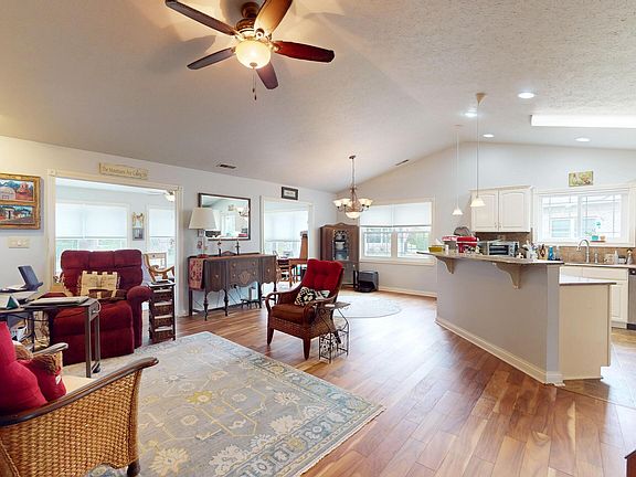 This well-maintained, low-maintenance single-story home in the desirable LaScala Villas community offers 2 bedrooms, 2 bathrooms, and an attached 2-car garage. Explore this home via interactive 3D home tour, complete with floor plans. The open-concept great room features stunning Acacia hardwood flooring, a cozy gas log fireplace, and vaulted ceilings with recessed lighting creating a bright and welcoming space. A split-bedroom layout provides added privacy. The primary suite includes direct access to the patio, a spacious walk-in closet, and a private bathroom equipped with a walk-in bathtub and shower combo. Designed for enhanced comfort and safety, this bathroom also features grab bars and a low step-in design. The impressive 23' x 13' All-Season Room adds valuable extra living space and showcases a beautiful wall of windows, allowing for an abundance of natural light year-round. Step outside to enjoy the patio, complete with a retractable awning perfect for relaxing or entertaining.