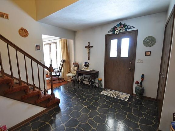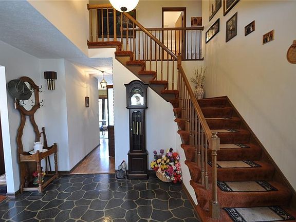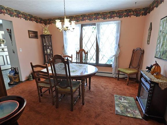 Peace and tranquility at its' finest. This lovely home sits on 2 acres at the top of the hill surrounded by woods. It has been lovingly cared for by the same owner for 35 years. Inside are very large rooms including an eat in kitchen with granite countertops and an island with butcher block top and pull out shelving, family room with wood burning fireplace, large master bedroom with master bath and a deck off the bedroom, three other bedrooms up, formal living and dining rooms, finished rec room and another room for possible 5th bedroom. Lower level and garage floor finished with Nature Stone. Outside boasts 5 decks, a greenhouse, storage shed, a five year old 250 gal. hot tub and lots of room to enjoy nature. Property has its' own well plus a cistern to hold city delivered water if desired. Boiler is 5 years old and roof is 15 years old.