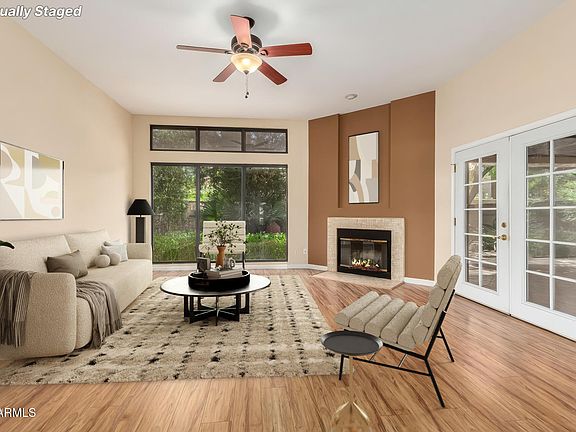 Resort style living in a prime location! Rare patio home in The Springs with NO COMMON WALLS. Enjoy the ultimate in comfort and convenience in this 24/7 guard-gated community adjacent to Stonecreek Golf Course. Amenities include pickleball, tennis, and heated pool and spa. Spacious floorplan with high ceilings. Private backyard with lush landscaping and covered patio. Just minutes from hiking, mountain biking trails, upscale shopping, dining, and PV Reimagined with its array of fine restaurants. Quick access to both 51 and 101 freeways.
