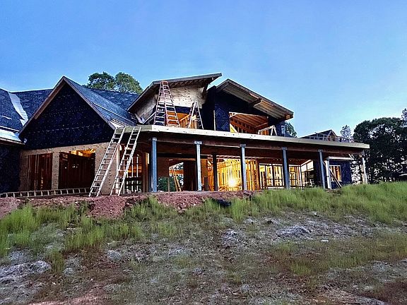 New construction opportunity on 11+ lush acres only 45 Minutes from Atl airport. This home is lAS-IS. The main dwelling can vary from 4-6 bedrooms and overlooks a private lake. Sitting 900 feet off of the main road your private oasis awaits backing up to 465 acres of forestry land. A step-less entrance into 7,529 sq feet boast Owner's Suite on main floor with private covered terrace and oversized bathroom. The en suite bath ready for free standing oversized tub and separate luxury showers. Open flooring concept for entertaining large groups showcasing a custom and inviting design that creates a light filled space pulling you in and making you want to stay. Covered terrace leading out of the great room overlooks private lake and endless possibilities with the outdoor spaces surrounding the compound. Spacious Bedroom 2 and 3 on the main floor share a Jack and Jill style bathroom.