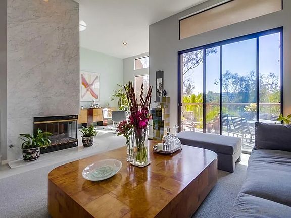 A rare opportunity! This sophisticated 1,722 sq ft, 3-bedroom, 2.5-bath townhome offers the perfect blend of tranquil canyon living and vibrant urban convenience. Tucked at the end of a quiet street and just a few blocks from the heart of Mission Hills village, this home offers thoughtful design, natural beauty, and everyday comfort. Inside, you'll find soaring ceilings, clerestory windows, skylights, and a dramatic floor-to-ceiling marble-faced fireplace. A smart, open layout enhances the flow of the main living areas, while three private balconies—including two with lush canyon views—extend your living space into the outdoors. Upstairs, all three bedrooms offer privacy and light. The spacious primary suite features a walk-in closet and its own canyon-facing balcony. Additional highlights include central heat and air, a real laundry room (not a closet!), generous storage, and a direct-access two-car garage with automatic lighting and keyless entry for added convenience. Mission Hills—known for its 100+ year history, tree-lined streets, canyons, architectural charm, and community events—offers a true neighborhood feel just minutes from Downtown, Balboa Park, and San Diego’s best attractions. A rare opportunity! This sophisticated 1,722 sq ft, 3-bedroom, 2.5-bath townhome offers the perfect blend of tranquil canyon living and vibrant urban convenience. Tucked at the end of a quiet street and just a few blocks from the heart of Mission Hills village, this home offers thoughtful design, natural beauty, and everyday comfort. Inside, you'll find soaring ceilings, clerestory windows, skylights, and a dramatic floor-to-ceiling marble-faced fireplace. A smart, open layout enhances the flow of the main living areas, while three private balconies—including two with lush canyon views—extend your living space into the outdoors. Upstairs, all three bedrooms offer privacy and light. The spacious primary suite features a walk-in closet and its own canyon-facing balcony. Additional highlights include central heat and air, a real laundry room (not a closet!), generous storage, and a direct-access two-car garage with automatic lighting and keyless entry for added convenience. Mission Hills—known for its 100+ year history, tree-lined streets, canyons, architectural charm, and community events—offers a true neighborhood feel just minutes from Downtown, Balboa Park, and San Diego’s best attractions.