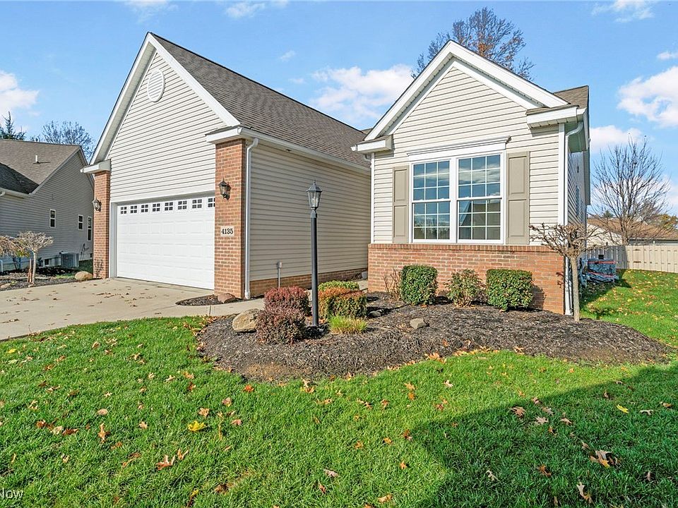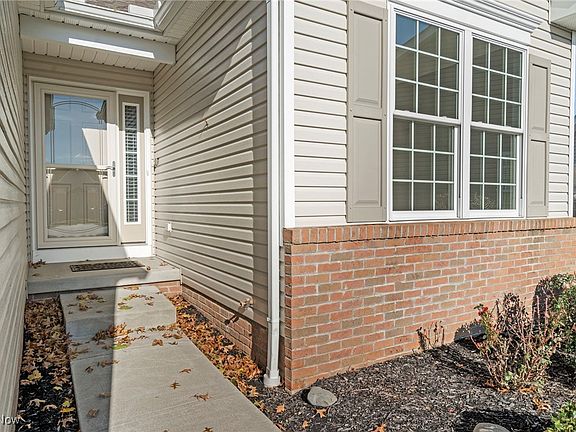 This beautiful two-bedrooms, two-bathrooms condo offers an open-concept floor plan with the added convenience of one-floor living. As you step through the front door, you’ll be greeted by vaulted ceilings, contemporary colors, and LVT flooring throughout the main living areas. Large windows invite natural light, enhancing the spacious feel of the great room, which boasts a gas fireplace—a perfect spot for cozy gatherings. The well-appointed kitchen is a chef's dream, featuring extra-deep, soft-close cabinets, gorgeous granite countertops, a stylish backsplash, and a center island with breakfast bar seating. The kitchen flows effortlessly into the dining area and eating nook, which provides access to the lovely patio and backyard—ideal for outdoor relaxation. The generously-sized owner's suite is the ultimate retreat, complete with an en-suite bathroom and a spacious walk-in closet. The first floor also includes a laundry room with a utility sink. The home is equipped with a fully insulated basement, offering endless possibilities for additional living space. The property sits on the largest lot in the condominium, providing plenty of room for outdoor activities and entertainment. Additional amenities include a water filtration system and a two-car garage with an additional 4ft of storage space. The home is ideally located close to the Village of Mogadore's parks, restaurants, and other local conveniences, and still only 5 mins from I-76.