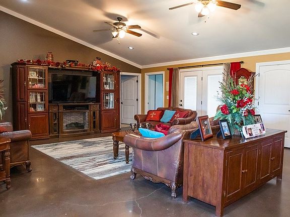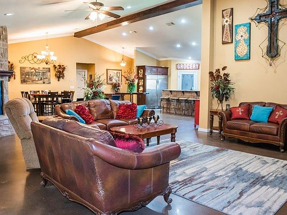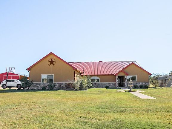 BIG PRICE REDUCTION! Approximately 5 acres in Christoval and has everything you could possibly want to enjoy country living. This beautiful home has a Lovely open floor plan with large gas cooktop and griddle, plus large living area, beautiful fireplace,and a man cave/den with bar. Additionally there is an apartment fully equipped with kitchen, living and bath not in the square footage nor is the unfinished room above garage that has electric and cable and would be easy to convert. 1808' barn with 2 50' overhangs, and a 2 acre, well-fed pond with a dock and tiki hut for entertaining fun! This is a one owner home that has endless opportunities.