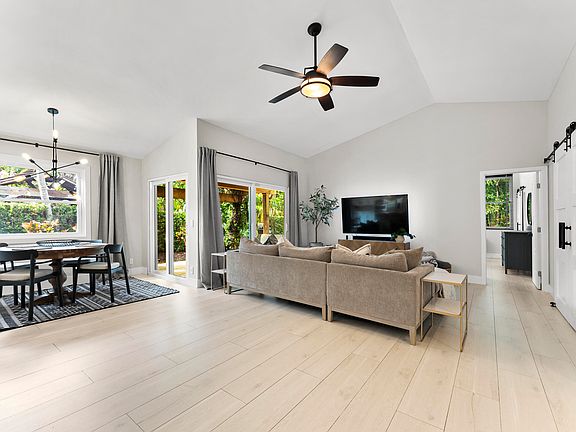 Welcome to your dream home at 4135 Northwest 1st Court in Delray Beach! This beautifully renovated 3-bedroom, 2-bathroom residence spans 1,525 sq ft and is nestled on a private lot. Enjoy modern living with a new kitchen featuring GE Profile appliances, a double oven, and ample cabinet space. The home boasts fresh interior and exterior paint, hurricane impact windows, and upgraded electric box with EV plug and new plumbing fixtures. Step into luxury with tile floors, crown molding, and custom lighting. The master suite opens to a private patio through elegant French doors, perfect for outdoor entertaining on travertine marble patios. Additional features include a new AC unit, tankless water heater, and a garage door opener. Community amenities include new pickle ball courts.