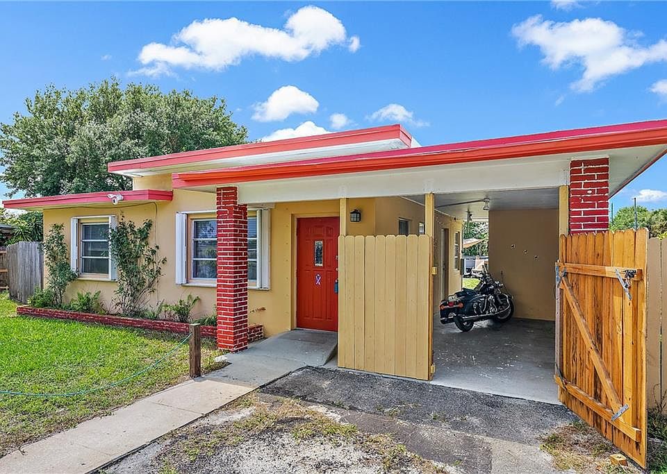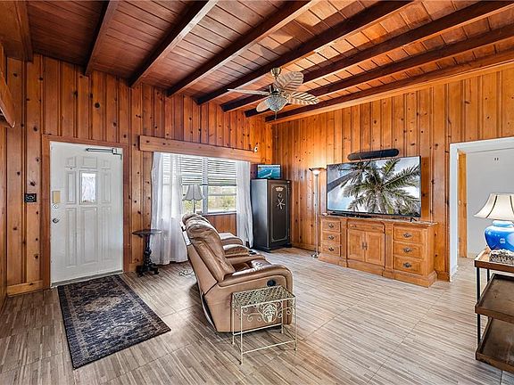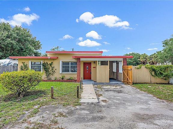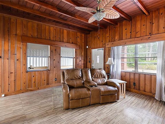 This charming CBS home offers a character-filled interior with beautiful wood paneling & wood beam ceiling & NO HOA! No Popcorn here. Lots of green space offers many exciting options outside, including two sheds and picnic table all which stay. There is plenty of room for a pool or to park your boat or RV. There is also a convenient 50 Amp RV hookup, & the yard is fully fenced in with trees - Mango, Avocado and more! Carport is currently fenced in but could easily be removed after closing to utilize the carport to park a car. Washer & dryer do not covey but there is a hookup. Partial accordian shutters in front but full hurricane protection. Close to shopping, restaurants & highways. Roof 2006, A/C 2018, WH 2014. Hot tub and deck do not stay with the property. Hurry before it's gone.