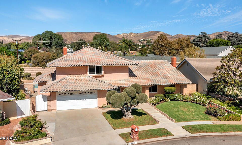 Welcome home to this desirable Fountainwood beauty featuring an amazing floorplan with 6 bedrooms/3 bath in an absolute amazing neighborhood! Guests are welcomed into a beautiful foyer with soaring ceilings and an open concept living room w/ marble fireplace & dining room that encourages entertaining! Light & bright kitchen provides the perfect blend of beauty & function. Charming kitchen dining catches your eye while breakfast bar seating offers convenience. Spacious family room w/ cozy stone fireplace, wet bar & french doors leading you outdoors...wonderful for entertaining! Master suite is large w/dual closets. Secondary bedrooms are spacious in size offering two of the six downstairs so perfect for office, game room or mother-in-law quarters. Private backyard with sparkling pool, large grassy area, spacious covered patio....ready for family fun! Additional upgrades include dual-paned windows, fruit trees, indoor laundry room with chute, large front porch, private location and more! This home sits in one of the most desirable communities of Simi Valley with easy freeway access, close to shopping, restaurants, walking distance to excellent schools and more!