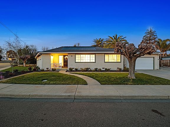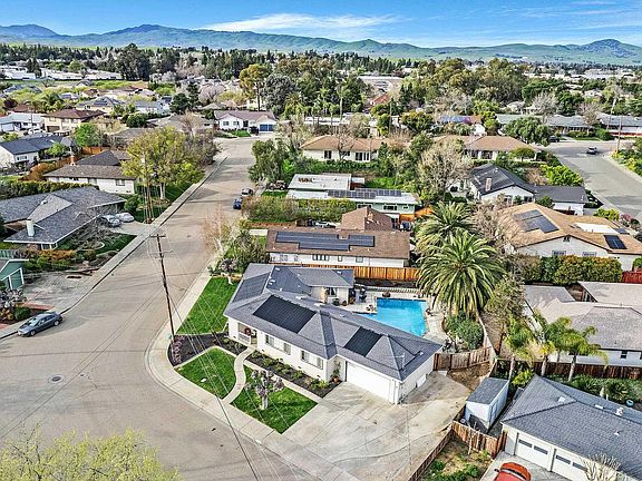 Beautifully remodeled Leonardo built home, boasting an open floorplan with vaulted ceilings and skylights illuminating the living room. Step into the heart of the home, with renovated kitchen in 2019 open concept to the living room, featuring granite countertops, pristine white cabinets, and top-of-the-line KitchenAid stainless steel appliances. Newer Laminate flooring flows throughout the living space for a modern feel. Remodeled bathrooms with Italian tile flooring and shower surrounds completed in 2022. Retreat to the spacious master bedroom, offering a sliding door to the patio and pool. Step outside and unwind in the expansive private backyard, where a recently updated pool with new plaster and tile awaits, ready to provide enjoyment during warm summer days. Roof and pool solar panels were replaced in 2020, new fencing 2022 and 2023. Nestled in an ideal location at the end of the street, on a large corner lot with side access allowing room for your boat or RV. Take advantage of the proximity to schools, parks, community center, and restaurants, vibrant downtown all within a short walking distance!