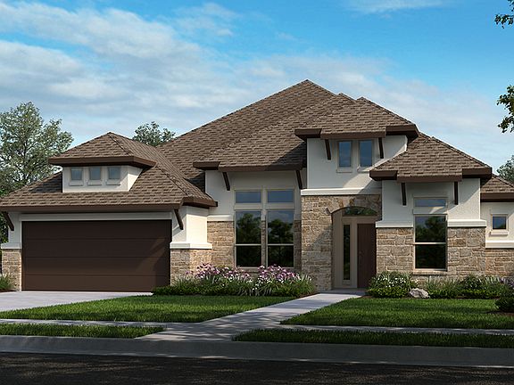Creative Leander, TX New House Design Offers 2nd Story Game RoomAn excellent choice for Leander, TX home buyers seeking a spacious single-story plan, the Pewter house design at Travisso offers a variety of living spaces in an expansive ranch-style layout. Socialize in the impressive great room or take the party outside to the generous covered outdoor living. Both gathering spaces feature fireplace options for added warmth and ambiance. Host custom dinner events in the dedicated dining room or card games in the large flex space off the foyer. All with the comfort of a well-equipped gourmet kitchen and truly immaculate owner's retreat.Classic Curb Appeal & Welcoming EntranceDesigned and executed by America's Most Trusted Home Builder, Pewter features charming elevations using multi-material techniques and distinctive architectural details. The house design offers modern curb appeal blended with a classic neighborhood-style look. An inviting covered porch welcomes visitors into your new construction Austin home where they're greeted with open foyer.Travis County Home with Rare Double-Island Gourmet KitchenDeluxe appointments and an imaginative layout combine for a remarkable gourmet kitchen arrangement. Take advantage of extra workspace plus a convenient staging area with an island to stow away small appliances, cooking supplies and more in the spacious walk-in pantry. Celebrate good food in a chef-inspired layout that connects seamlessly to the great room and dining r