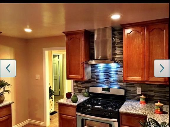 A simply beautiful Spanish style home Home features new paint inside and out. Home has sound proof windows all around. Once you enter the home you will see all the extreme details. There is crown molding thru out. The Kitchen is very spacious and features new cabinets, granite counter tops and a exquisite glass and mosaic back splash. The kitchen comes equipped with a stainless steel stove and stainless steel microwave and hood. The hood is a gorgeous detail to this kitchen. Off the kitchen you have an ample dining room with elaborate base boards that add that extra detail. There is recessed lighting in the kitchen. The bedrooms, have beautiful designer lights and wall to wall carpet. The bathroom has also been completely remodeled with lots of attention to color and detail. In addition, the home also has central air and heat. There is a washer and dryer hook up. There is a New Water Heater. There is a one car detached garage. Interior of garage has finished dry walls. The rear yard has plenty of space to host all your family gatherings.