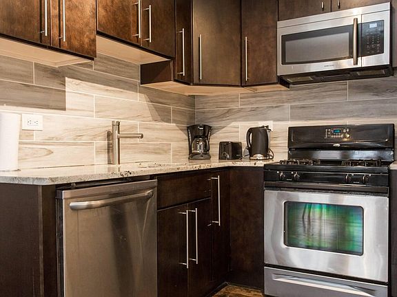 -Good transportation location. Just 2 block from the Healy Metra stop which is 20min to down town/union station. Stainless steel appliances, granite countertops, wood floors, backsplash, decorative reclaimed wood center hall, stylish building.