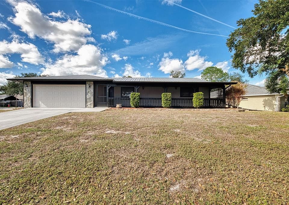 Come and explore this remarkable large family home located on an oversized corner lot in the desirable Lake Sarasota community. This move-in ready property is situated within a highly sought-after school district with Lakeview Elementary just a short distance away. The home has been meticulously maintained and features all new interior and exterior paint, newer appliances, and a well designed open floor plan connecting the living room, dining room, and kitchen. Highlights include wood floors, a built-in gas fireplace, a spacious home office area, and a large laundry room with extensive storage and included washer and dryer. Additional features include a metal roof for long-term durability, two expansive screened patios at the front and rear of the home, and a large fenced backyard with a sunken above-ground pool. The rear patio also includes a hot tub--perfect for relaxing evenings. An added bonus is the workshop shed with dedicated parking pad suitable for a boat or RV, discreetly positioned on the side of the corner lot. This non-deed-restricted community has no HOA fees, offering flexibility and freedom. Homes like this are rare, and this one truly stands out. Call for your private showing today!