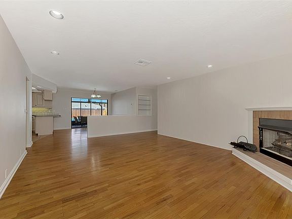 Built-in gas fireplaceNewer appliancesSpacious home office areaOversized corner lotWood floors