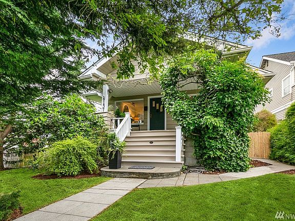 Lovingly updated 1915 Craftsman tucked away on large secluded lot. Chef's kitchen w/new quartz counters, SS appliances, gas cooktop, Solatube lighting, oversized breakfast bar + Mt Rainier & city view. Large picture windows in living rm & wood burning fireplace. 2 BR on main & updated bath. Downstairs BR, 3/4 bath, sitting/media rm + home office. Utility rm w/sink. Minutes to Junction shopping & dining + parks & Alki. Fully fenced backyard, 1-car garage w/addt'l workspace + off-street parking.